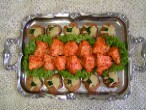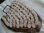Roastbeefröllchen mit Waldorfsalat, Partymettwürste,